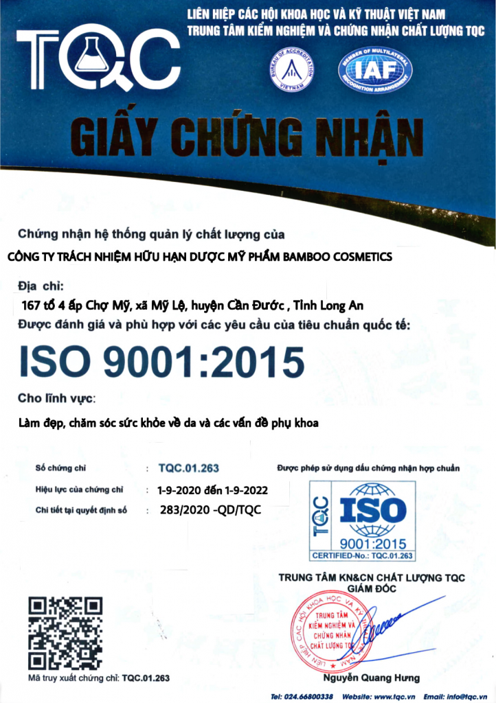4/ Giấy chứng nhận sản phẩm chất lượng bộ y tế Việt Nam kiểm duyệt ISO 9001 – 2015