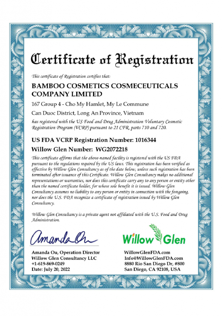 Năm 2023, Công ty đăng ký thành công nhãn hiệu thương hiệu độc quyền : “THE BAMBOO Cosmectics Organic Việt Nam” khẳng định chất lượng, uy tín của dòng dược phẩm thiên nhiên hướng đến thuần chay Việt Nam trên trường quốc tế.