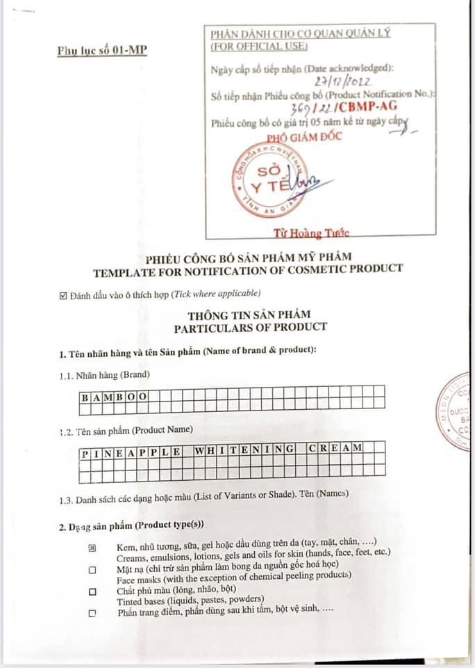 3/ Giấy công bố sản phẩm Body dứa